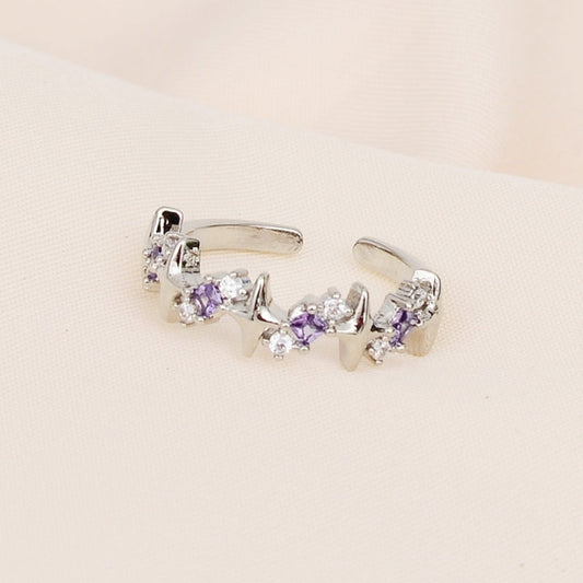 Ins Sweet Wind Purple Water Diamond Love Open Ring Women's Four Star Niche Cold Wind Light Luxury Personalized Ring